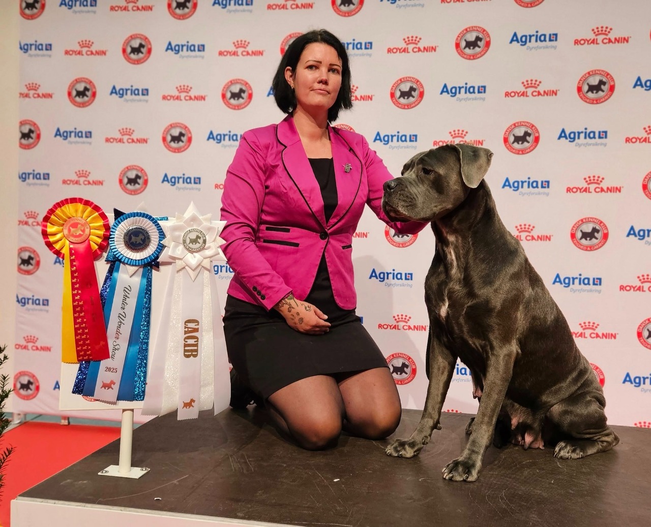 Tessie fick tyvärr nöja sig med Excellent, CK och 2a bästa tik lördagen, Söndagen fick hon endast Excellent. Tyvärr föll hon på sina hängtuttar, haha! Hon blev såklart skendräktig precis innan, så fick aldrig riktigt upp tuttarna igen.. Inte lätt och vara avelstik och även en duktig mamma som lätt blir skendräktig! De domaren hade tyvärr inte lika stor förståelse som den första som kunde bortse från det ;)